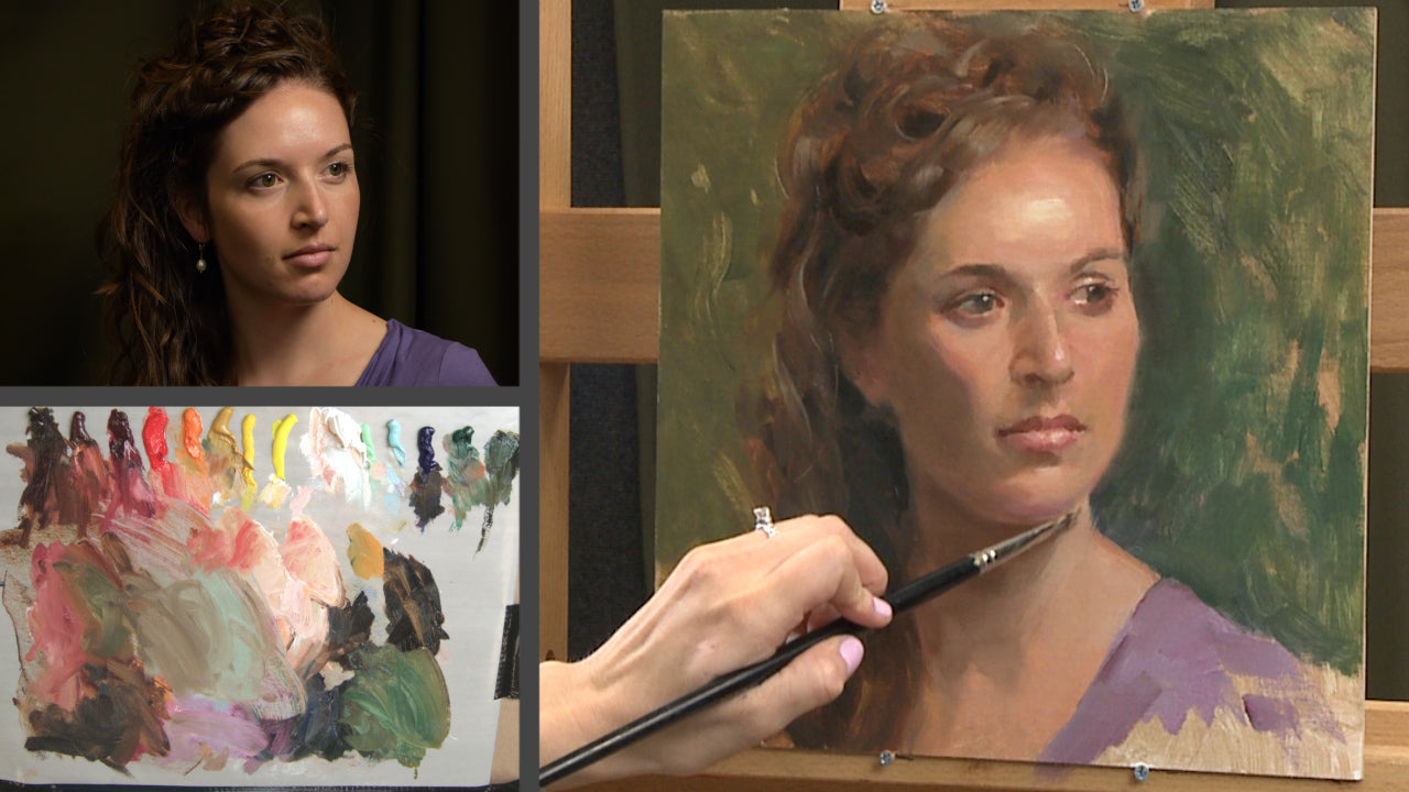 We recently filmed Anna Rose Bain painting vibrant skin tones. Anna is an incredible artist as well as teacher. She is very clear and concise as she explains her methods that help her create beautiful and vibrant skin tones in her award winning paintings. There is also a bonus chapter on dark skin tones. The 2 hour 20 min DVD is ready to be shipped.