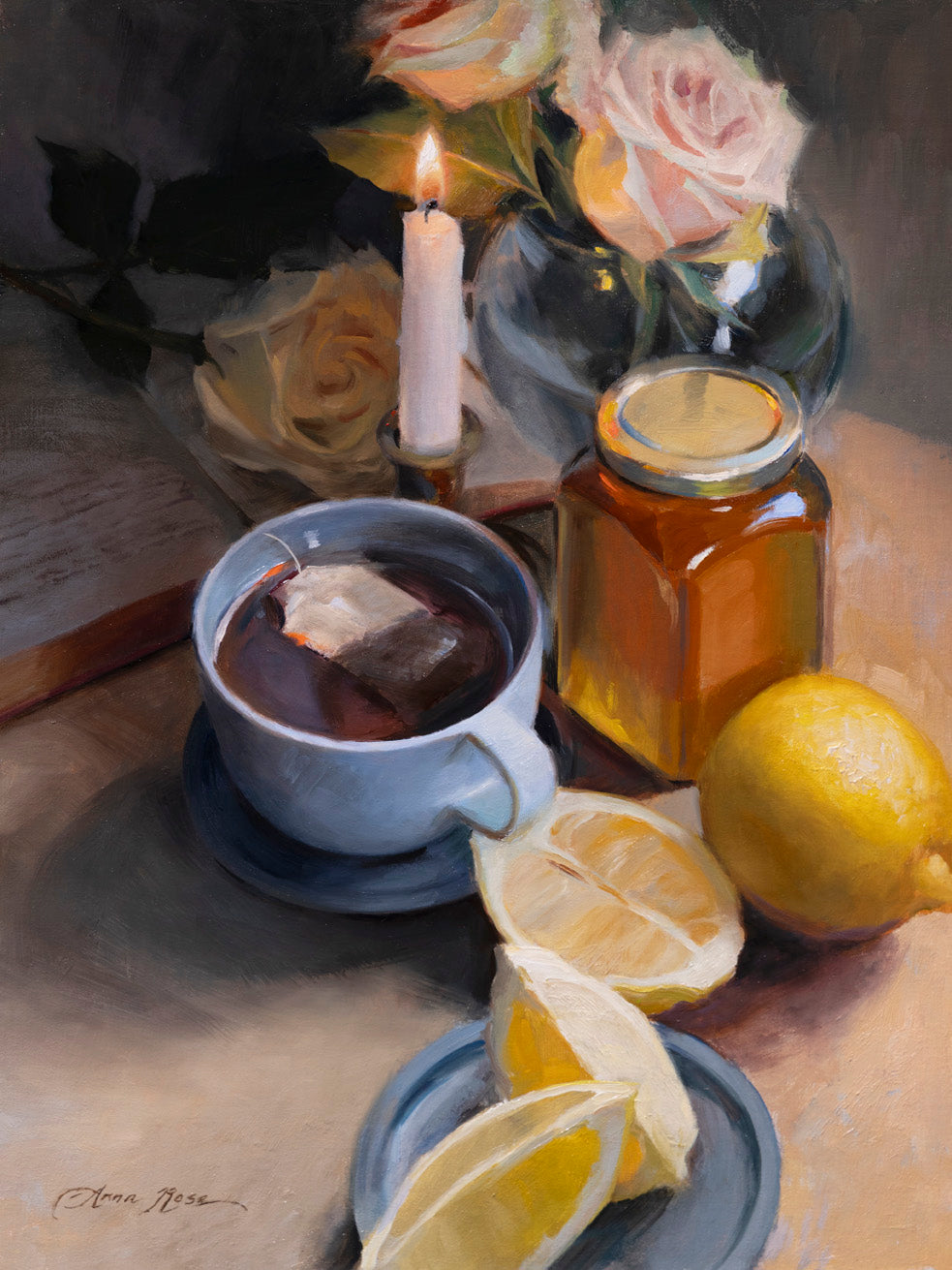 16x12 inches, oil on linen panel. Framed in a gold frame.