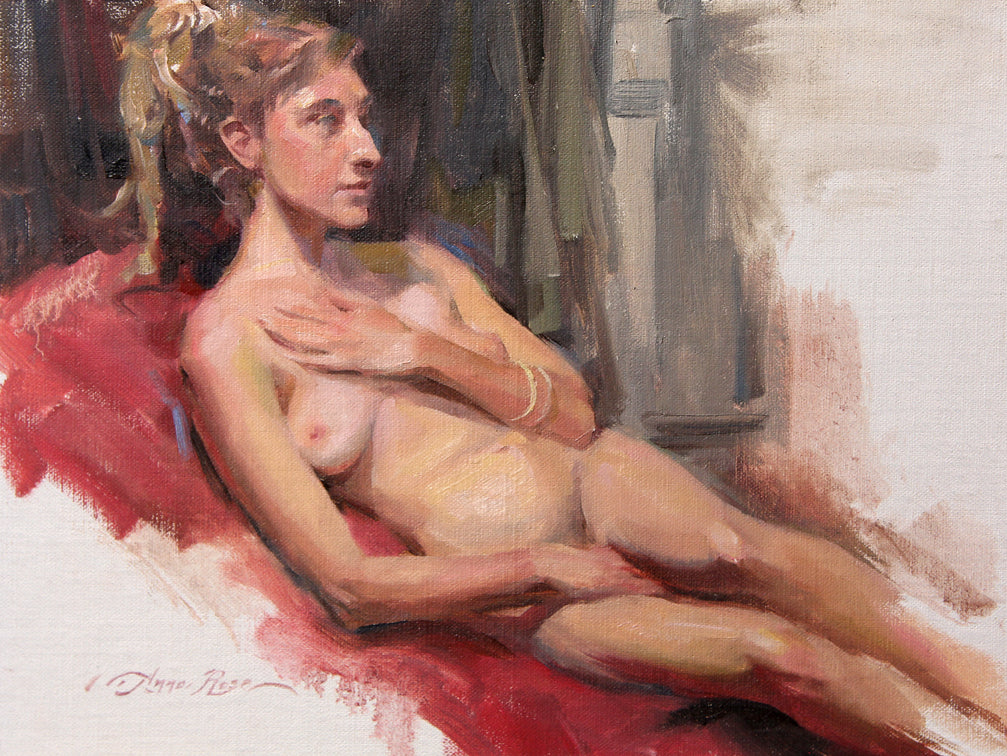 9x12 inches, oil on linen panel. Painted from a live model. Unframed.