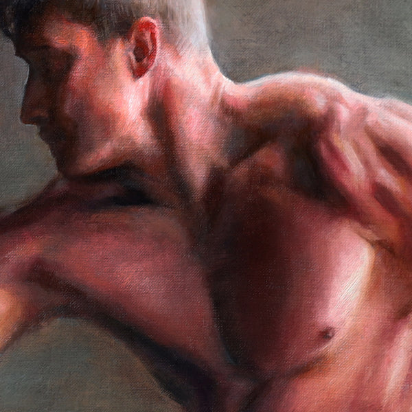 In a series that often explores quiet sanctuaries and intimate inner worlds, Running with Wolves stands apart as a study of raw strength and primal energy. Modeled by my Crossfit coach and friend, the male figure embodies both the discipline of the individual and the power of the collective. The wolves gather around him, echoing humanity’s timeless need for a tribe—a pack that offers belonging, protection, and identity.