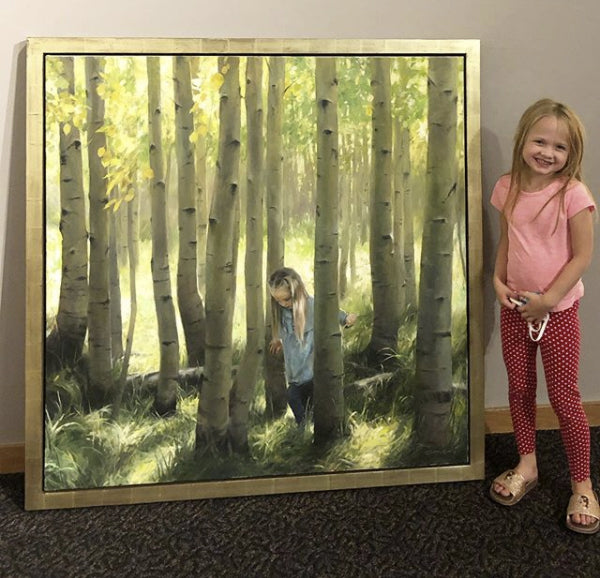 Large scale painting of the artist's daughter that took over a year to complete. Serious purchase inquiries only. Includes custom 12k floater frame by Bryan Smith.