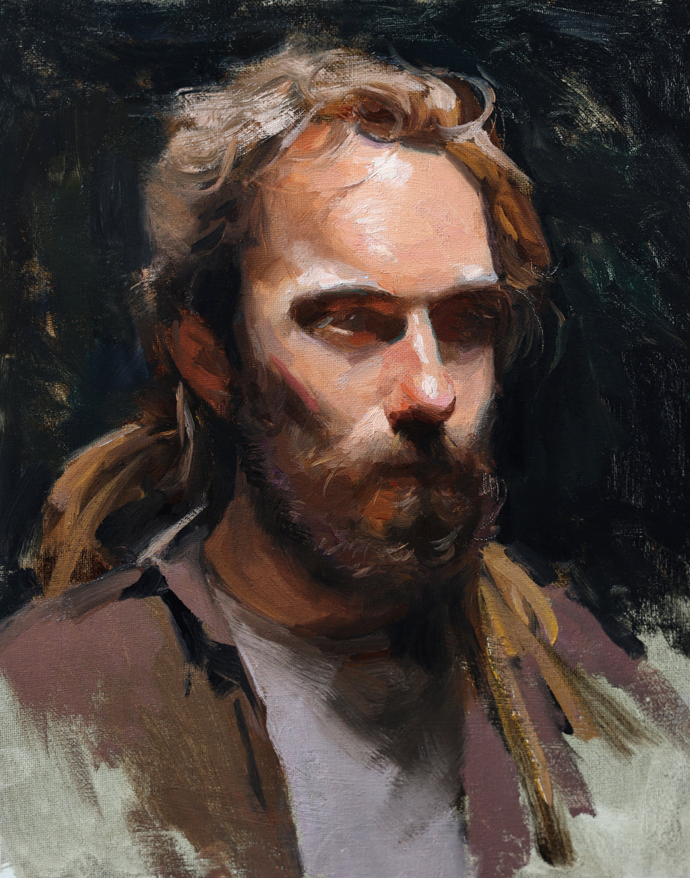14x11 inches, oil on canvas panel. Painted from life as a demo for one of Anna's instructional videos. Model: Artist Tanner Steed