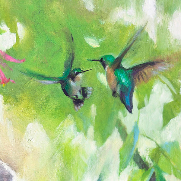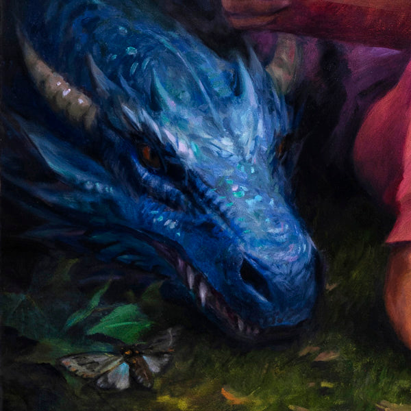 I included both a dragon and a cicada, since 2024 was the year of these creatures. The dragon symbolizes the mythical, the untamed, and the power of imagination; the cicada represents cycles of life, transformation, and endurance. For me, those two symbols together became especially meaningful. I worked on this painting during one of the most tumultuous times in my life, when uncertainty and change were constant companions. Creating something light and whimsical wasn’t just an artistic choice—it was a lifeline. On the really hard days, the act of painting this enchanted refuge kept me excited to create and reminded me that beauty and wonder still existed alongside struggle.